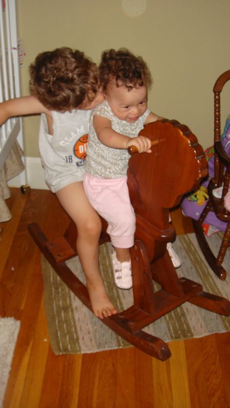 Альбом Jeremiah&Celeste. Фото "Она любит на лошадке первым делом, как встанет, качаться, но братцу тоже надо:))" 45.6 k (450x800) DSC00258.JPG