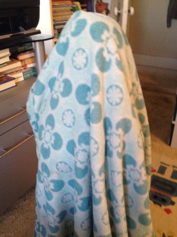 Альбом Jeremiah&Celeste. Фото "А это я попросила Селестушу сфотографироваться "для т. Оли", она схватила одеяло и на голову его:)))" 67.4 k (600x800) IMG_8430.JPG