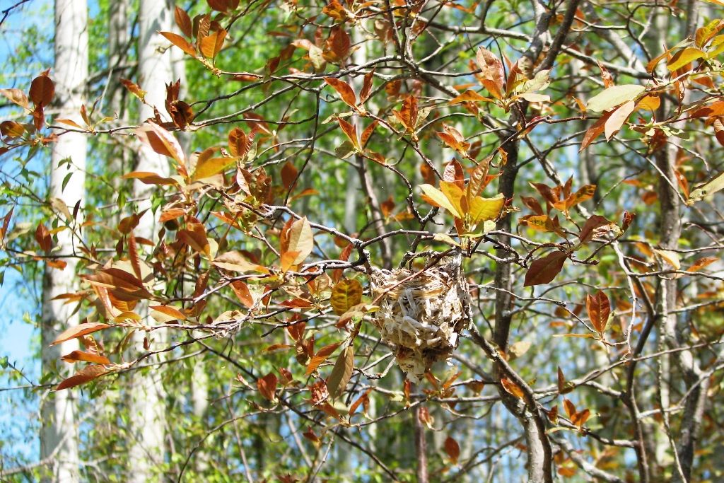 Берестяное гнездышко 2 и первые листья черемухи