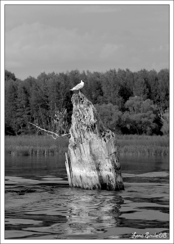 Альбом Пейзаж. Фото "чайка и пень (чб)" 200.5 k (580x812) IMGP6108чб копия.jpg