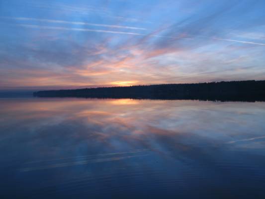 Закат на зеркальной воде залива