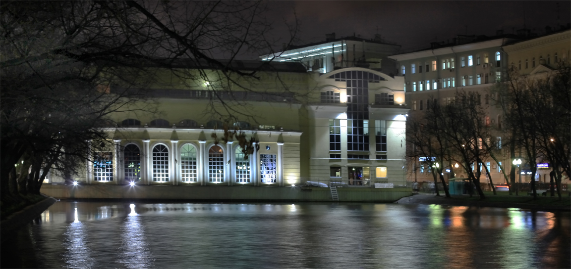 Альбом Город. Фото "Вечер на Чистых прудах" 391.3 k (1152x544) Чистые-пруды-ночью.jpg