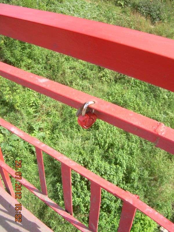 Кунгур, мост через Сылву, замки молодожёнов на мосту. 23 июля 2012 года.