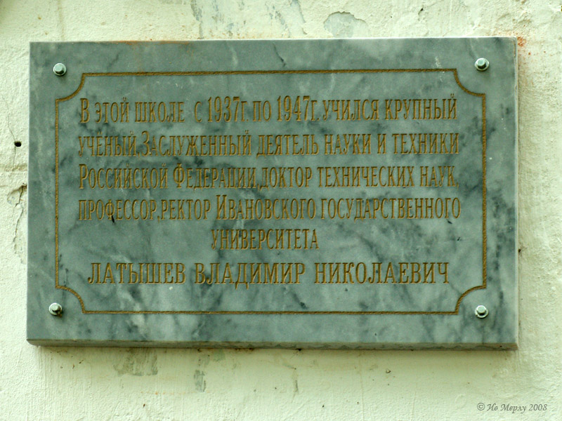 Альбом Вичуга+, архитектура советского периода. Фото "Школа №10. Мемориальная доска" 187.2 k (800x600) 080727n020mf ИвО Вичуга К3 школа№10 Латышев МД.jpg