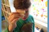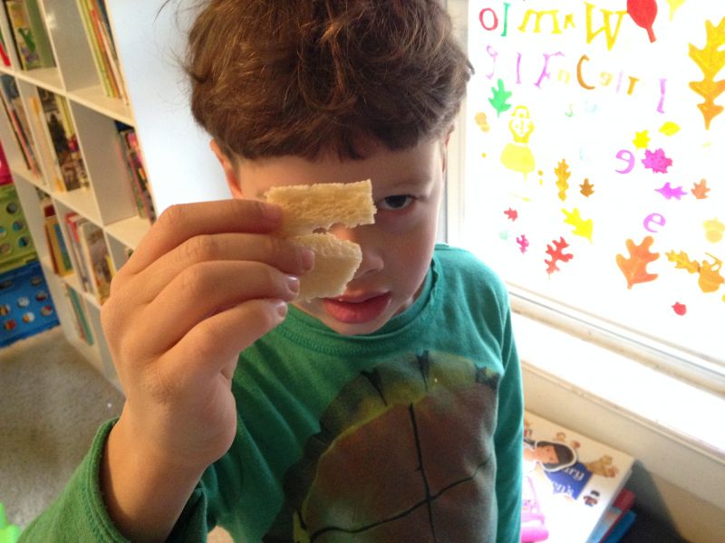 Настоял, чтобы я его "монстра" на память сфотографировала, чтобы он его запомнил:) Это он перед школой обязательно тост хочет есть. |