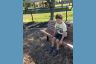 Занимает себя, пока я работаю, а Дж. сидит с айпадом.