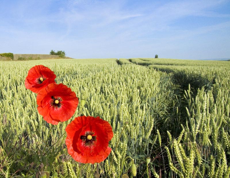 те, которые раньше были- лучше (а самая лучшая, с одиночным маком на фоне солнца).. здесь само поле неплохо, с дорогой, с небом, но маки как клоны.. как три точки в эфире